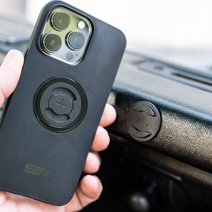 Mobile phone mounting for every situation: With the Adhesive Kit, the SP ConnectTM Phone Case can be flexibly attached to almost any smooth, flat and non-porous surface. So you always have your cell phone in view - and your hands free.
